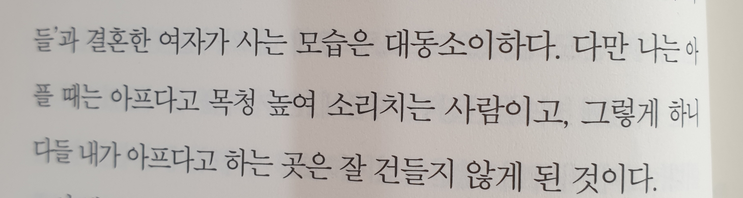"다만 나는 아플 때는 아프다고 목청 높여 소리치는 사람이고, 그렇게 하니 다들 내가 아프다고 하는 곳은 잘 건들지 않게 된 것이다."